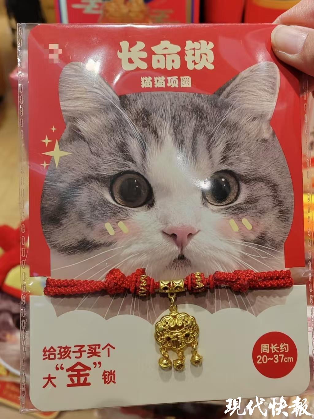 2月5日下午,在南京新街口附近的一家连锁生活百货店,依然洋溢着浓厚的新年气氛。“猫猫戴上财神帽,财运好到喵喵叫”“给孩子买个大‘金’锁”……在店门口,宠物新年饰品的标语引人注目。