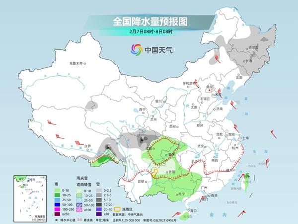 气象部门提醒,今明两天随着气温逐渐下降,贵州、湖北西南部、湖南北部等地部分地区可能出现雨夹雪,贵州局地有冻雨,目前仍处于春运返程期,公众需注意防范道路湿滑、能见度降低等对交通出行的不利影响。