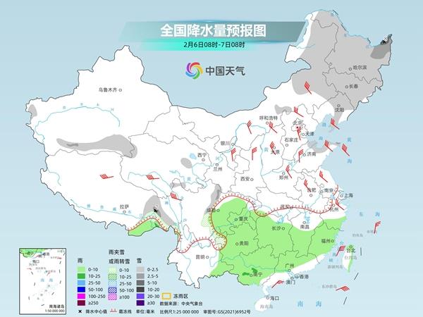 今天(2月6日),蛇年首场寒潮上线,将自北向南给中东部地区带来大风降温天气,西北地区东部、华北和黄淮的部分地区过程降温幅度将达10℃以上,长江中下游及其以北地区阵风可达7至8级,风寒效应明显。与此同时,今明两天西南地区东部、江南等地降水频繁,正值春运返程期,公众需注意防范道路湿滑、能见度降低对交通出行的不利影响。