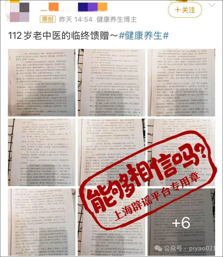 蛇年工作日伊始,一条“112岁的老中医临终馈赠”的帖子登上某社交平台热搜榜,十几页A4纸上密密麻麻地写了100条“养生秘诀”。但粗粗一看,能发现疑点多多——