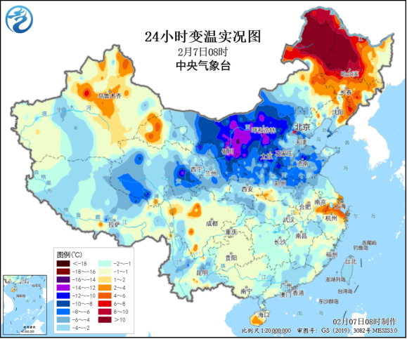 另外,7日至8日,西南地区东部、广西等地有小雨,贵州中西部、云南东部的部分地区有雨夹雪或冻雨;内蒙古东部、黑龙江、吉林、山东等地有小到中雪,其中7日,川西高原西北部、西藏东部等地局地有大雪。