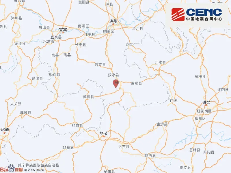 中国地震台网正式测定:2月6日22时25分在四川泸州市叙永县(北纬28.00度,东经105.49度)发生3.3级地震,震源深度11千米。
