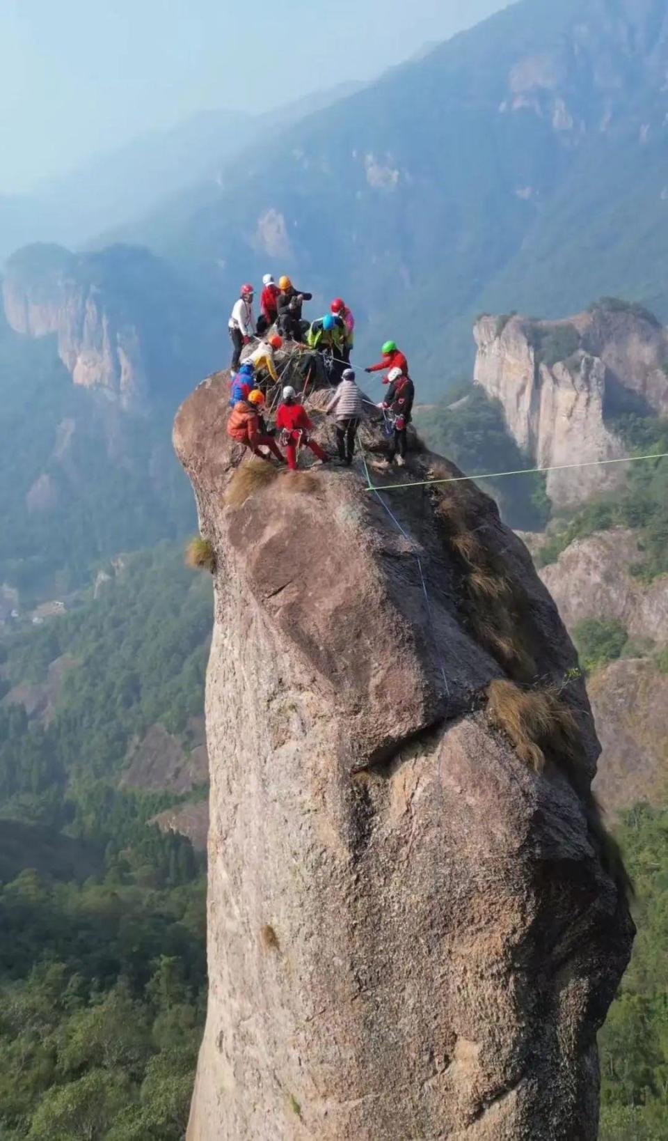 近日,一条看起来“惊险”的视频在网络流传:12个人身上绑着绳索,手拉着手围成一圈,站在石柱“金枪峰”上摇摆着身体,身后是悬崖。不少网友表示不解,这样做安全吗?景区是否允许?