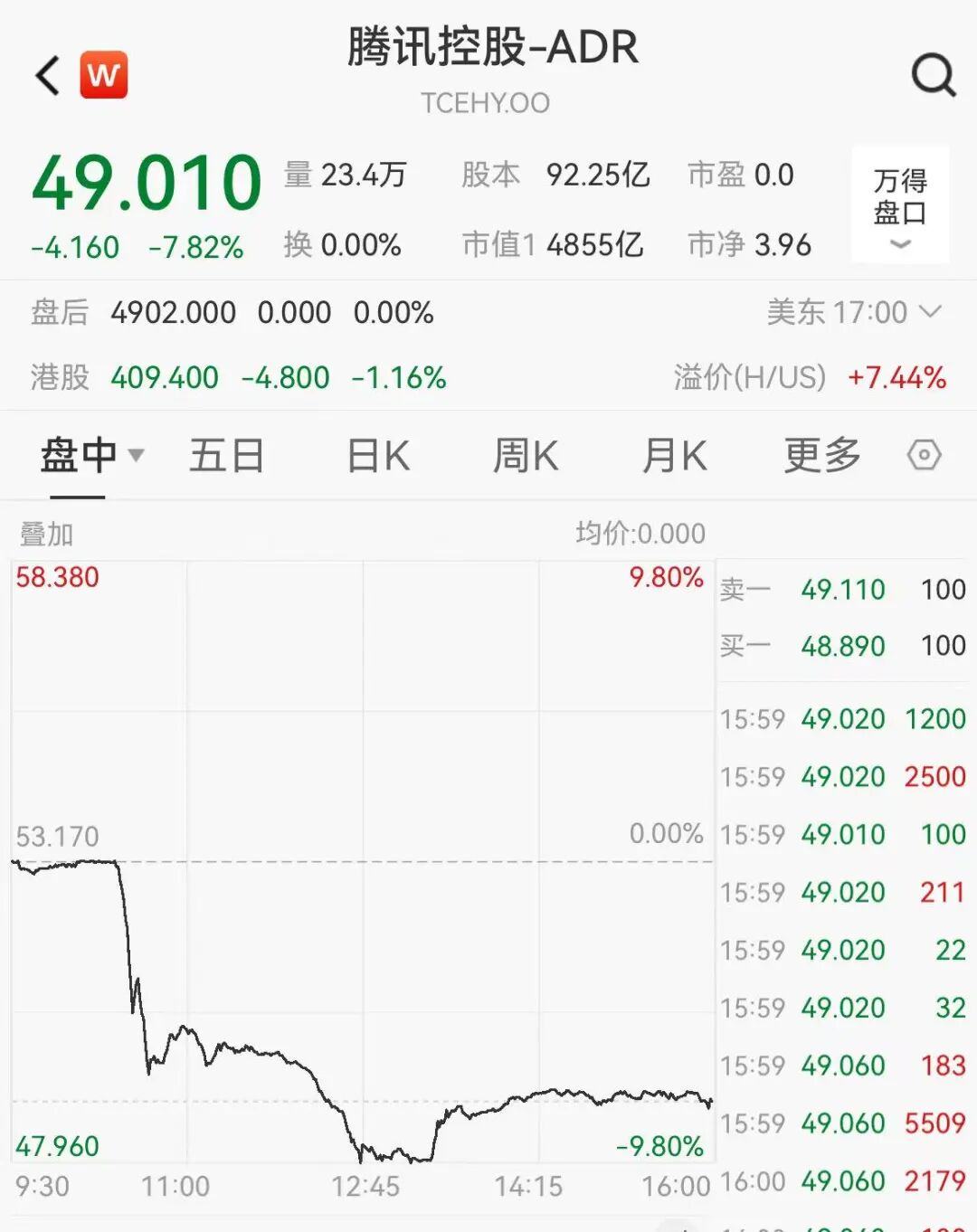 当地时间1月6日,腾讯控股ADR大跌超7%,此外,腾讯大股东Prosus也大跌超7%。