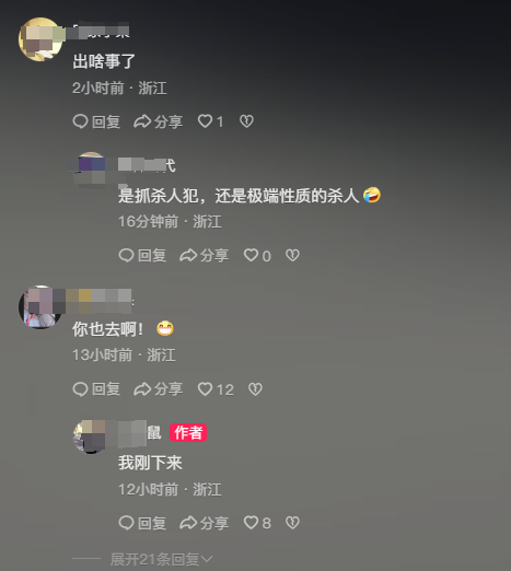 在某社交平台,有网友发布视频,当地村民手持棍棒,整装待发。有人晒出了诸暨公安上述《悬赏通告》,也有知情人在评论区评论:“是抓杀人犯,还是极端性质的杀人。”